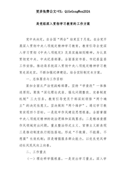 【七哥公文】2025年:局党组深入贯彻学习教育的工作方案+更多免费公文+VX:QiGeGongWen2024+更多免费公文+VX:QiGeGongWen2024