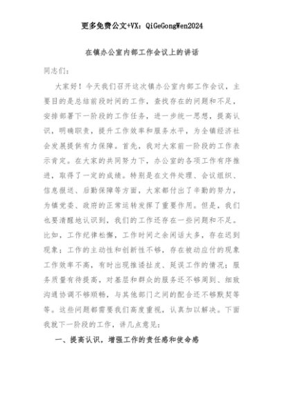 【七哥公文】2025年:在镇办公室内部工作会议上的讲话+更多免费公文+VX:QiGeGongWen2024+更多免费公文+VX:QiGeGongWen2024