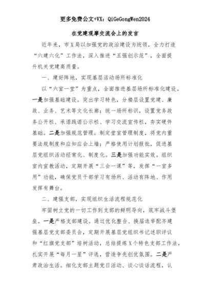 【七哥公文】2025年:在党建观摩交流会上的发言+更多免费公文+VX:QiGeGongWen2024+更多免费公文+VX:QiGeGongWen2024