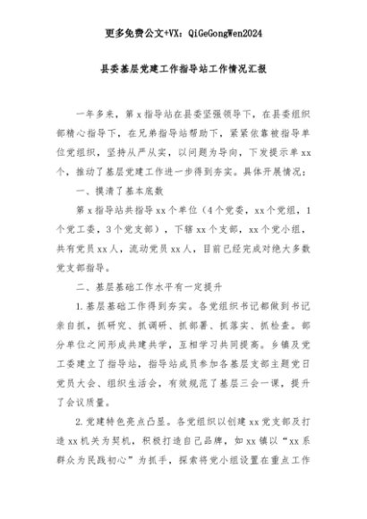 【七哥公文】2025年:县委基层党建工作指导站工作情况汇报+更多免费公文+VX:QiGeGongWen2024+更多免费公文+VX:QiGeGongWen2024