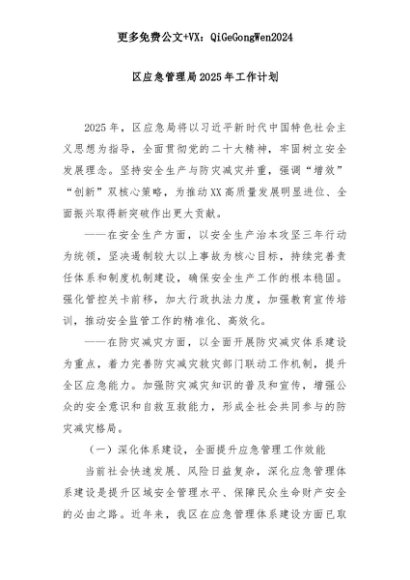 【七哥公文】2025年:区应急管理局2025年工作计划+更多免费公文+VX:QiGeGongWen2024+更多免费公文+VX:QiGeGongWen2024