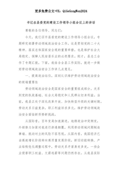 【七哥公文】2025年:书记在县委党的建设工作领导小组会议上的讲话+更多免费公文+VX:QiGeGongWen2024+更多免费公文+VX:QiGeGongWen2024