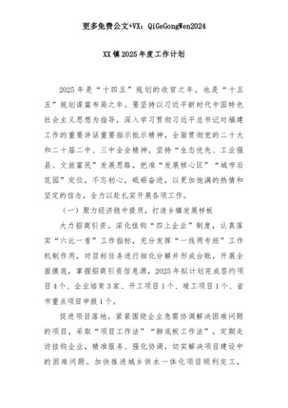 【七哥公文】2025年:XX镇2025年度工作计划+更多免费公文+VX:QiGeGongWen2024+更多免费公文+VX:QiGeGongWen2024