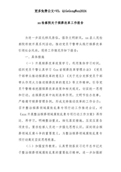 【七哥公文】2025年:xx检察院关于殡葬改革工作报告+更多免费公文+VX:QiGeGongWen2024+更多免费公文+VX:QiGeGongWen2024