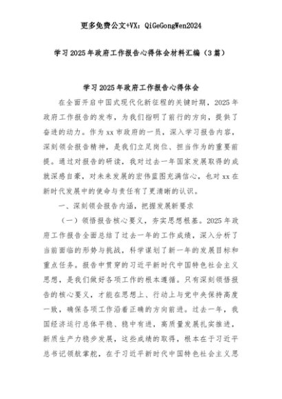 【七哥公文】2025年:(3篇)学习2025年政府工作报告心得体会材料汇编+更多免费公文+VX:QiGeGongWen2024+更多免费公文+VX:QiGeGongWen2024