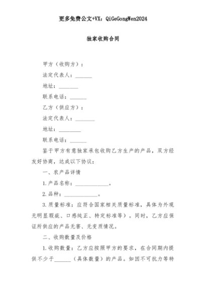 【七哥公文】2025年:独家收购合同+更多免费公文+VX:QiGeGongWen2024+更多免费公文+VX:QiGeGongWen2024