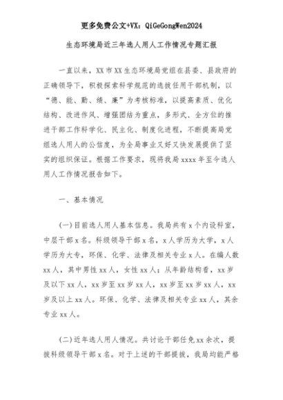 【七哥公文】2025年:生态环境局近三年选人用人工作情况专题汇报+更多免费公文+VX:QiGeGongWen2024+更多免费公文+VX:QiGeGongWen2024