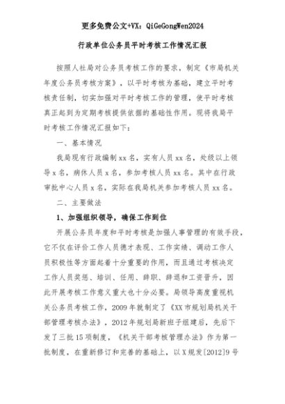 【七哥公文】2025年:行政单位公务员平时考核工作情况汇报+更多免费公文+VX:QiGeGongWen2024+更多免费公文+VX:QiGeGongWen2024