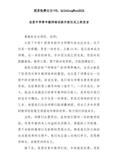 【七哥公文】2025年:在某中学青年教师培训班开班仪式上的发言+更多免费公文+VX:QiGeGongWen2024+更多免费公文+VX:QiGeGongWen2024