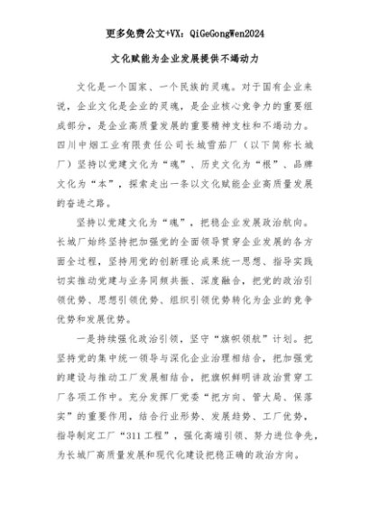 【七哥公文】2025年:文化赋能为企业发展提供不竭动力+更多免费公文+VX:QiGeGongWen2024+更多免费公文+VX:QiGeGongWen2024