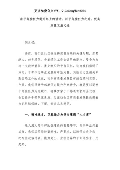 【七哥公文】2025年:在干部胜任力提升年上的讲话:以干部胜任力之升,促高质量发展之进+更多免费公文+VX:QiGeGongWen2024+更多免费公文+VX:QiGeGongWen2024