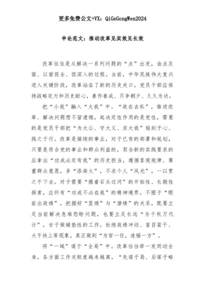 【七哥公文】2025年:申论范文:推动改革见实效见长效+更多免费公文+VX:QiGeGongWen2024+更多免费公文+VX:QiGeGongWen2024