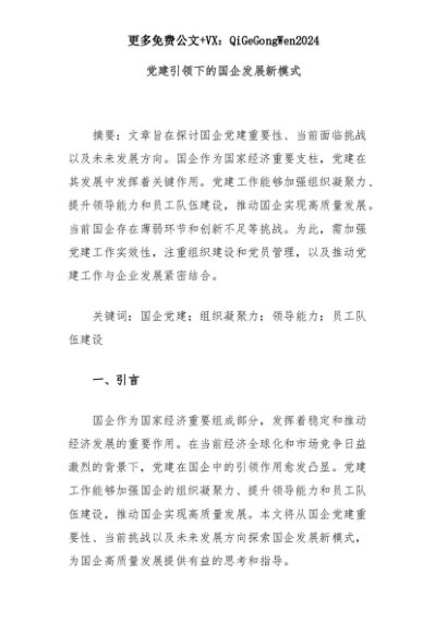 【七哥公文】2025年:党建引领下的国企发展新模式+更多免费公文+VX:QiGeGongWen2024+更多免费公文+VX:QiGeGongWen2024
