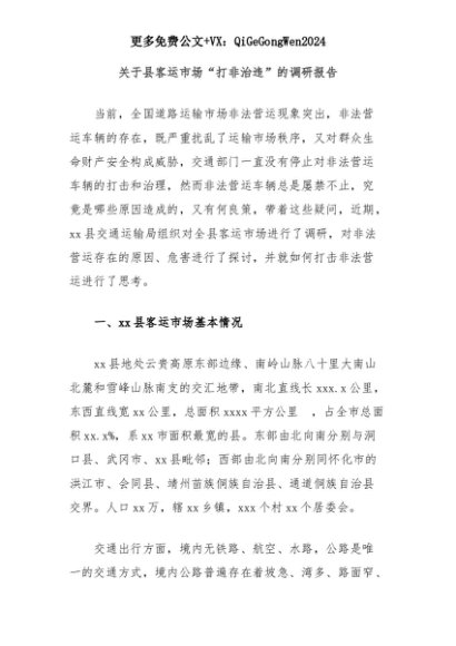 【七哥公文】2025年:关于县客运市场“打非治违”的调研报告+更多免费公文+VX:QiGeGongWen2024+更多免费公文+VX:QiGeGongWen2024