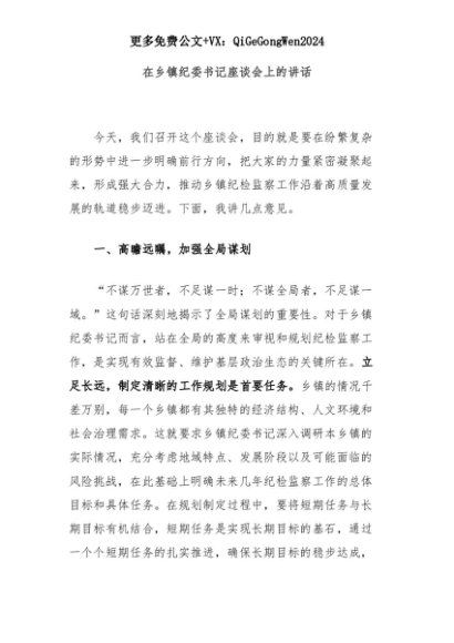 【七哥公文】2025年:在乡镇纪委书记座谈会上的讲话+更多免费公文+VX:QiGeGongWen2024+更多免费公文+VX:QiGeGongWen2024