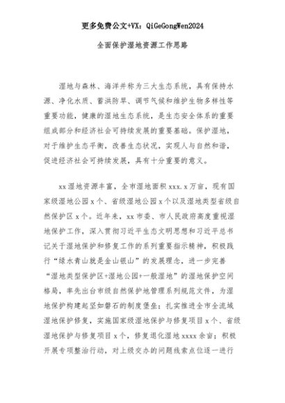 【七哥公文】2025年:全面保护湿地资源工作思路+更多免费公文+VX:QiGeGongWen2024+更多免费公文+VX:QiGeGongWen2024