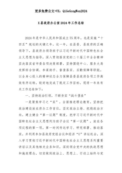 【七哥公文】2025年:X县政府办公室2024年工作总结+更多免费公文+VX:QiGeGongWen2024+更多免费公文+VX:QiGeGongWen2024