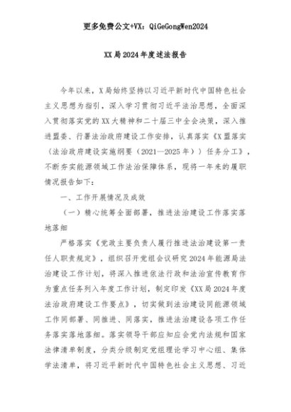 【七哥公文】2025年:XX局2024年度述法报告+更多免费公文+VX:QiGeGongWen2024+更多免费公文+VX:QiGeGongWen2024