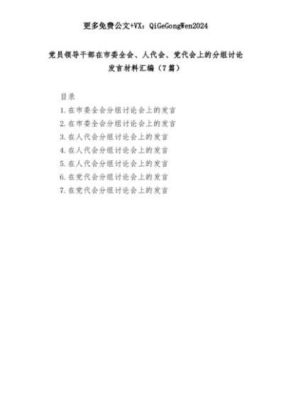 【七哥公文】2025年:(7篇)党员领导干部在市委全会、人代会、党代会上的分组讨论发言材料汇编+更多免费公文+VX:QiGeGongWen2024+更多免费公文+VX:QiGeGongWen2024