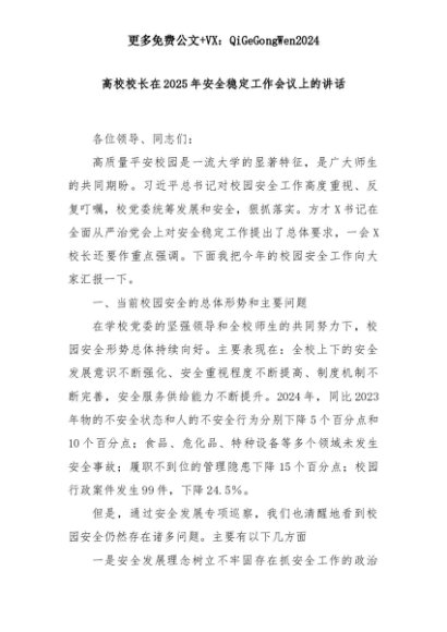 【七哥公文】2025年:高校校长在2025年安全稳定工作会议上的讲话+更多免费公文+VX:QiGeGongWen2024+更多免费公文+VX:QiGeGongWen2024