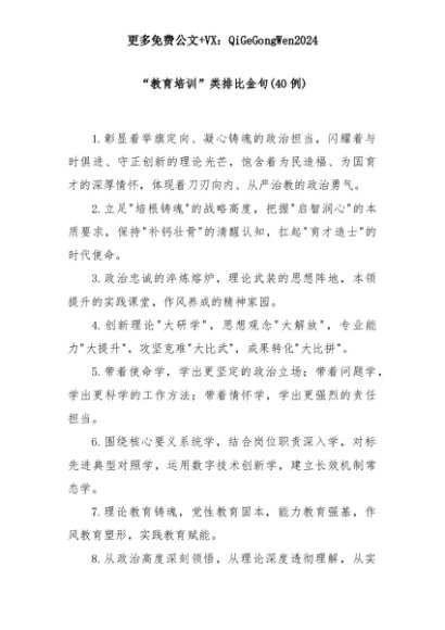 【七哥公文】2025年:(40例)“教育培训”类排比金句+更多免费公文+VX:QiGeGongWen2024+更多免费公文+VX:QiGeGongWen2024