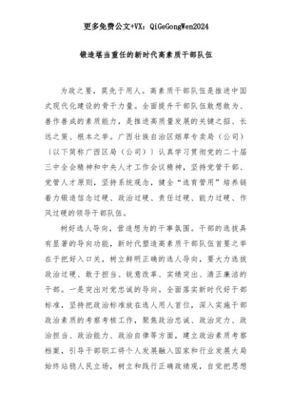 【七哥公文】2025年:锻造堪当重任的新时代高素质干部队伍+更多免费公文+VX:QiGeGongWen2024+更多免费公文+VX:QiGeGongWen2024