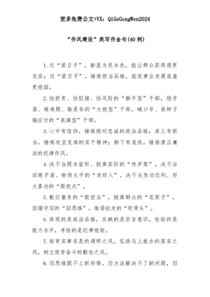 【七哥公文】2025年:(40例)“作风建设”类写作金句+更多免费公文+VX:QiGeGongWen2024+更多免费公文+VX:QiGeGongWen2024