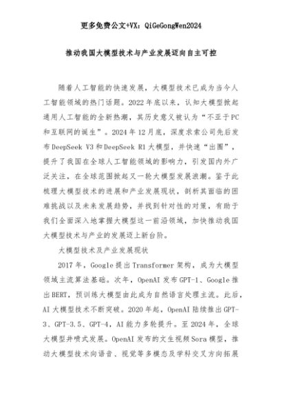 【七哥公文】2025年:推动我国大模型技术与产业发展迈向自主可控+更多免费公文+VX:QiGeGongWen2024+更多免费公文+VX:QiGeGongWen2024