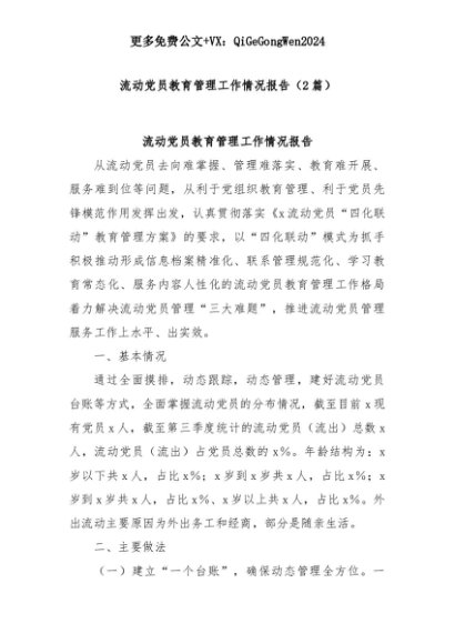 【七哥公文】2025年:(2篇)流动党员教育管理工作情况报告+更多免费公文+VX:QiGeGongWen2024+更多免费公文+VX:QiGeGongWen2024