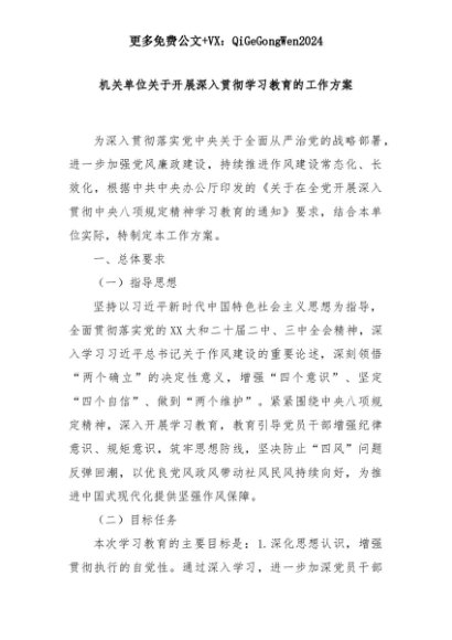 【七哥公文】2025年:机关单位关于开展深入贯彻学习教育的工作方案+更多免费公文+VX:QiGeGongWen2024+更多免费公文+VX:QiGeGongWen2024