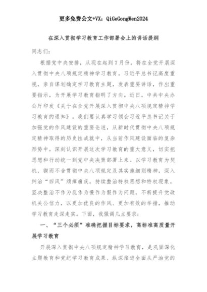 【七哥公文】2025年:在深入贯彻学习教育工作部署会上的讲话提纲+更多免费公文+VX:QiGeGongWen2024+更多免费公文+VX:QiGeGongWen2024