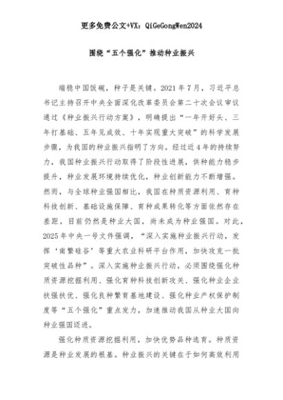 【七哥公文】2025年:围绕“五个强化”推动种业振兴+更多免费公文+VX:QiGeGongWen2024+更多免费公文+VX:QiGeGongWen2024