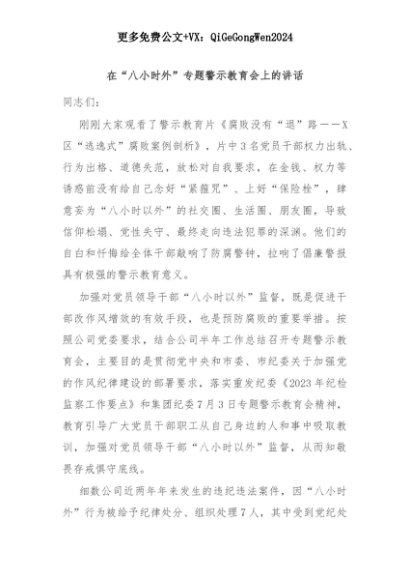 【七哥公文】2025年:在“八小时外”专题警示教育会上的讲话+更多免费公文+VX:QiGeGongWen2024+更多免费公文+VX:QiGeGongWen2024