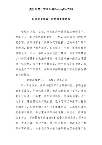 【七哥公文】2025年:副县级干部近三年思想工作总结+更多免费公文+VX:QiGeGongWen2024+更多免费公文+VX:QiGeGongWen2024