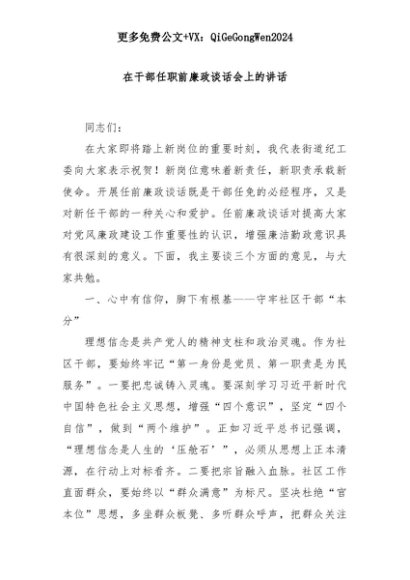 【七哥公文】2025年:在干部任职前廉政谈话会上的讲话+更多免费公文+VX:QiGeGongWen2024+更多免费公文+VX:QiGeGongWen2024
