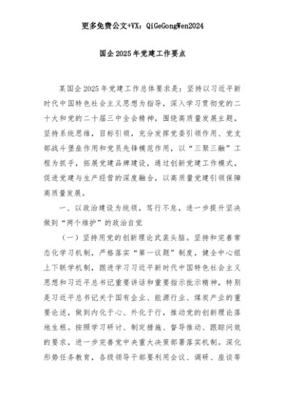 【七哥公文】2025年:国企2025年党建工作要点+更多免费公文+VX:QiGeGongWen2024+更多免费公文+VX:QiGeGongWen2024