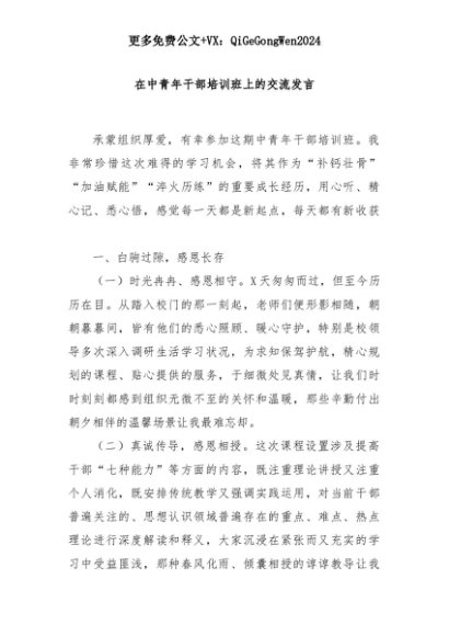 【七哥公文】2025年:在中青年干部培训班上的交流发言+更多免费公文+VX:QiGeGongWen2024+更多免费公文+VX:QiGeGongWen2024