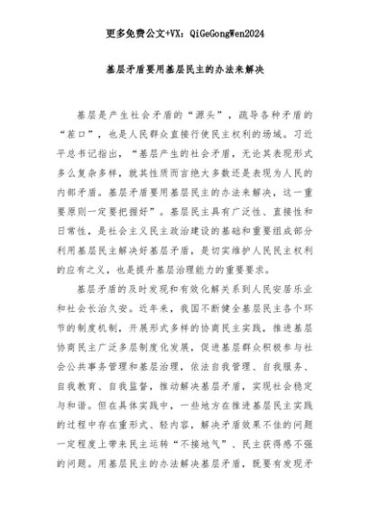 【七哥公文】2025年:基层矛盾要用基层民主的办法来解决+更多免费公文+VX:QiGeGongWen2024+更多免费公文+VX:QiGeGongWen2024