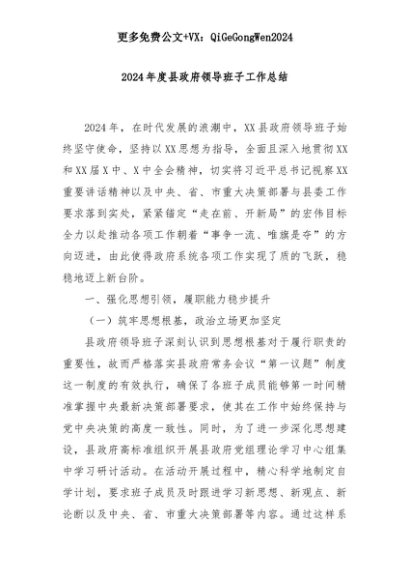 【七哥公文】2025年:2024年度县政府领导班子工作总结+更多免费公文+VX:QiGeGongWen2024+更多免费公文+VX:QiGeGongWen2024
