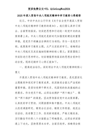 【七哥公文】2025年:2025年深入贯彻中央八项规定精神年学习教育心得感悟+更多免费公文+VX:QiGeGongWen2024+更多免费公文+VX:QiGeGongWen2024