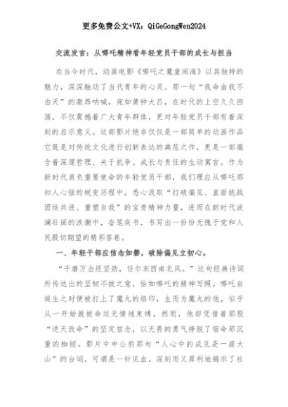 【七哥公文】2025年:交流发言:从哪吒精神看年轻党员干部的成长与担当+更多免费公文+VX:QiGeGongWen2024+更多免费公文+VX:QiGeGongWen2024