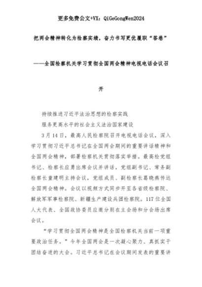 【七哥公文】2025年:把两会精神转化为检察实绩,奋力书写更优履职“答卷”——全国检察机关学习贯彻全国两会精神电视电话会议召开+更多免费公文+VX:QiGeGongWen2024+更多免费公文+VX:QiGeGongWen2024