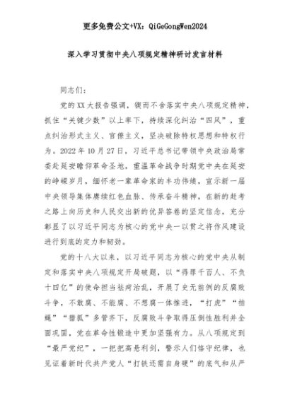 【七哥公文】2025年:深入学习贯彻中央八项规定精神研讨发言材料+更多免费公文+VX:QiGeGongWen2024+更多免费公文+VX:QiGeGongWen2024