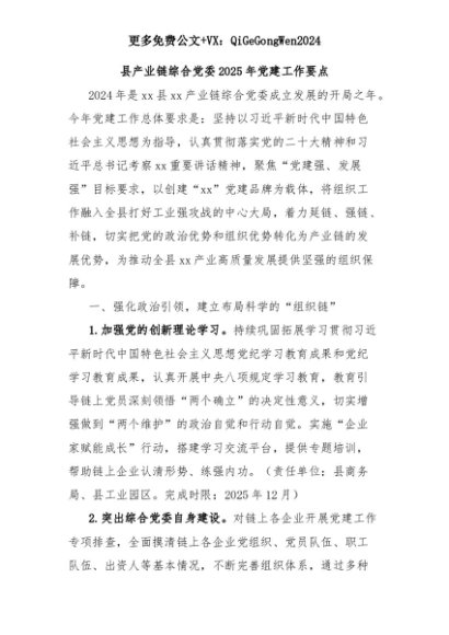 【七哥公文】2025年:县产业链综合党委2025年党建工作要点+更多免费公文+VX:QiGeGongWen2024+更多免费公文+VX:QiGeGongWen2024