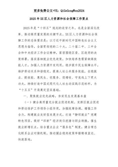 【七哥公文】2025年:2025年区人力资源和社会保障工作要点+更多免费公文+VX:QiGeGongWen2024+更多免费公文+VX:QiGeGongWen2024