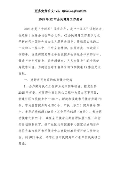 【七哥公文】2025年:2025年市全民健身工作要点+更多免费公文+VX:QiGeGongWen2024+更多免费公文+VX:QiGeGongWen2024