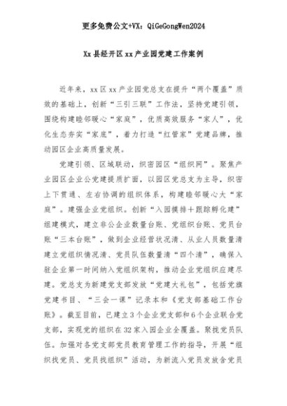 【七哥公文】2025年:Xx县经开区xx产业园党建工作案例+更多免费公文+VX:QiGeGongWen2024+更多免费公文+VX:QiGeGongWen2024