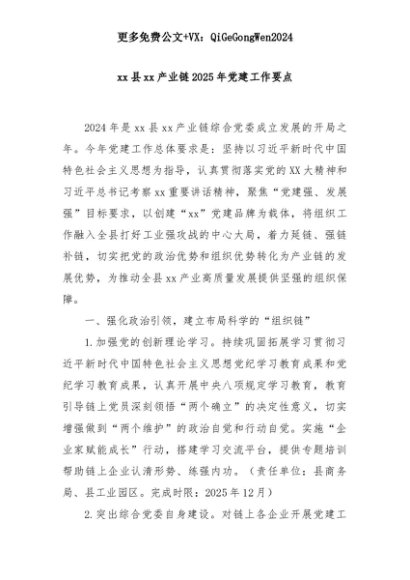 【七哥公文】2025年:xx县xx产业链2025年党建工作要点+更多免费公文+VX:QiGeGongWen2024+更多免费公文+VX:QiGeGongWen2024