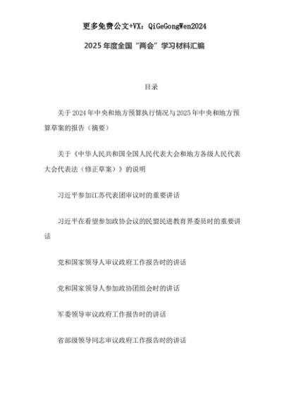 【七哥公文】2025年:2025年度全国“两会”学习材料汇编+更多免费公文+VX:QiGeGongWen2024+更多免费公文+VX:QiGeGongWen2024