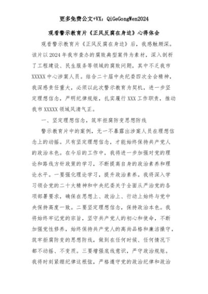 【七哥公文】2025年:观看警示教育片《正风反腐在身边》心得体会+更多免费公文+VX:QiGeGongWen2024+更多免费公文+VX:QiGeGongWen2024